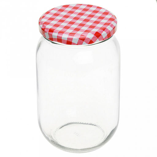 • Банка стеклянная с винтовой крышкой "Шотландка" 0,8л, д9см h15,2см, металлическая крышка, д/горла - 7см, д/основания - 6,3см (Китай)