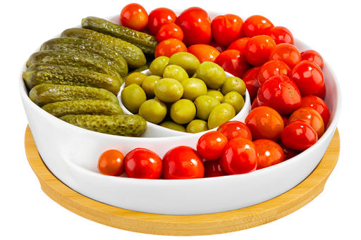 • Тарелка сервировочная - менажница 23*23*5 см 450 мл "Улитка" глубокая на деревян. подставке-подносе
