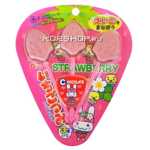 Клубничный шоколад на палочке Ичиго Цуми это удивительный сладкий десерт японского производства, который понравится любому ребенку. Изготовленный из цельного молока и измельченных ягод клубники, он имеет мягкий, деликатный вкус и манящий ягодный аромат, а необычное оформление делает его еще более привлекательным.