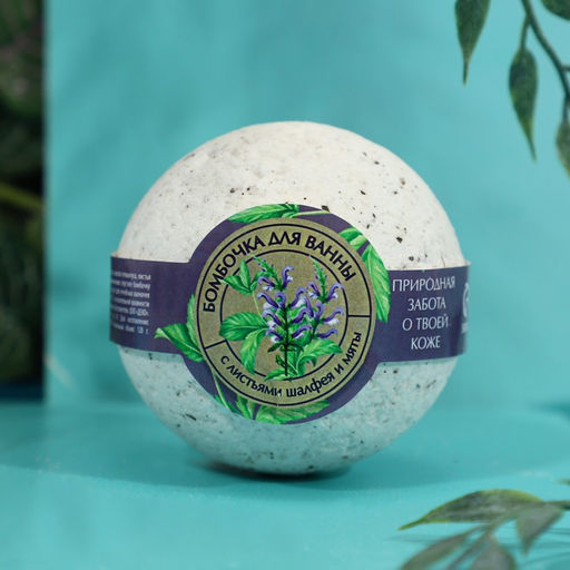 Бомбочка для ванны с листьями шалфея и мяты, 120 г, КЛАДОВАЯ КРАСОТЫ