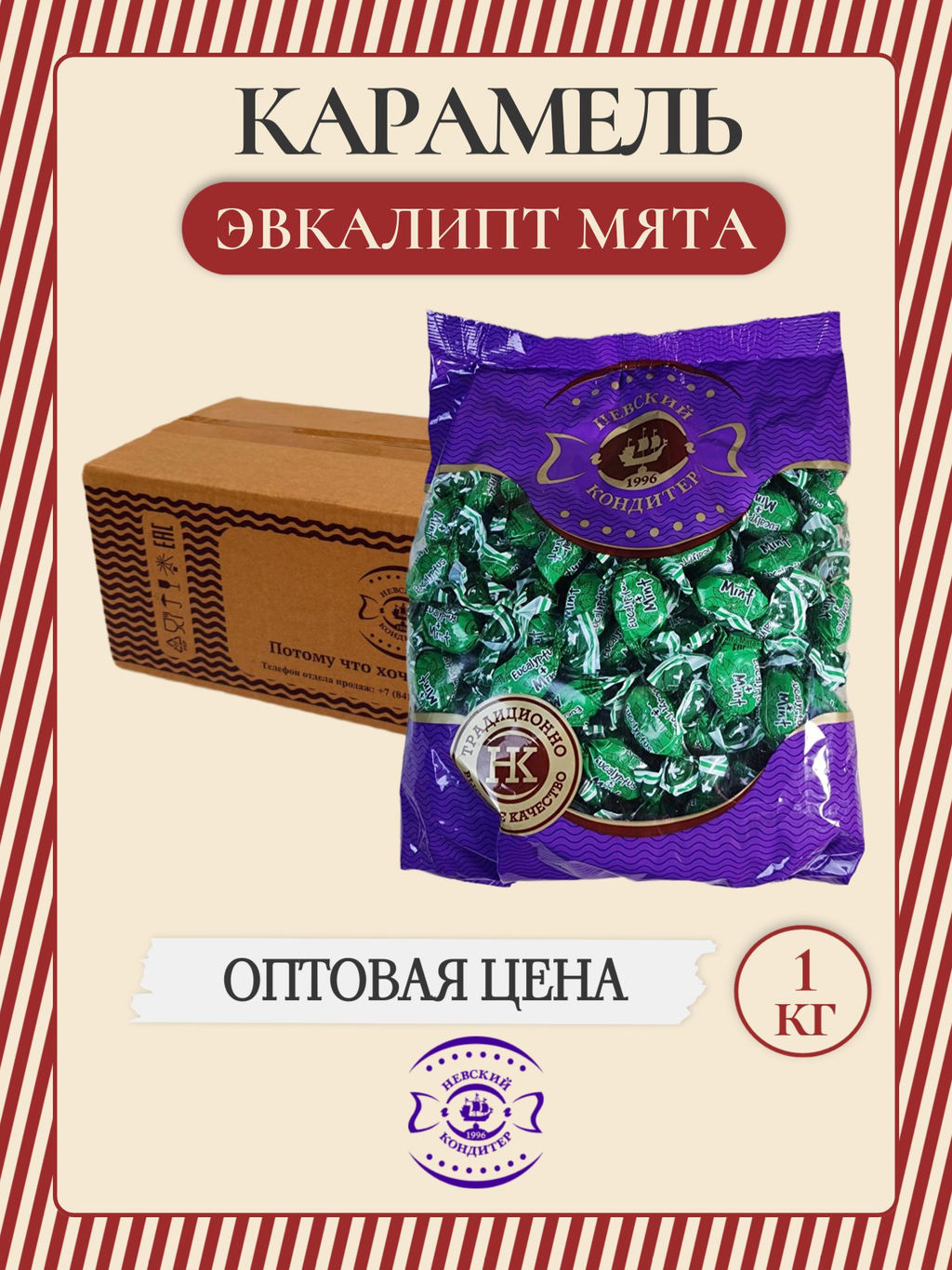 • Эвкалипт+Мята (L150) карамель леденцовая вес 1000 г*5 шт (Невский кондитер)