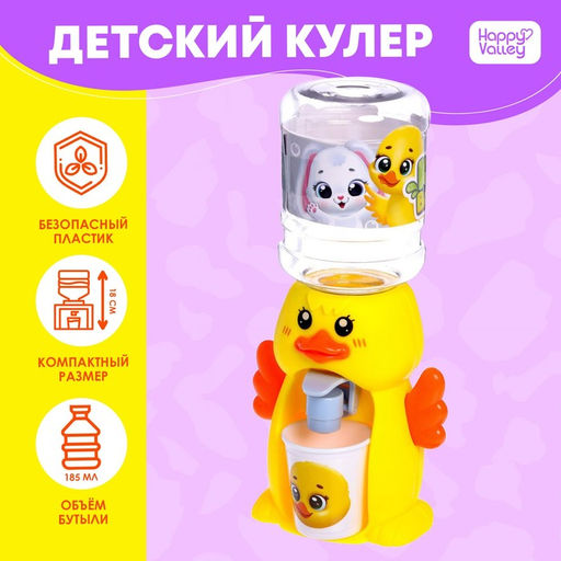 Компактный кулер для воды с небольшим резервуаром дополнит интерьер кухни маленькой хозяюшки и сделает игровые сюжеты более реалистичными.ОсобенностиОбъём бутылочки 185 мл.В комплект входит пластиковый стаканчик высотой 4 см.Чтобы налить воду, нужно нажать на краник.Подготовка к использованиюСнимите бутылку с кулера.Вымойте ёмкость, а затем наберите в неё воду.Закрутите кулер на бутылочке.Аккуратно переверните кулер вместе с ёмкостью. Для кого: Унисекс. Возраст: От 3 лет. Назначение детской техники: Для дома. Особенности: Льётся вода. Тематика: Посуда и продукты. Бесплатная доставка: Да. Наша разработка: Да. Размеры товара: 6/17.5/9.