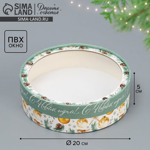 • Коробка новогодняя для макарун тубус с окном «С Новым годом», 20×20×5 см
