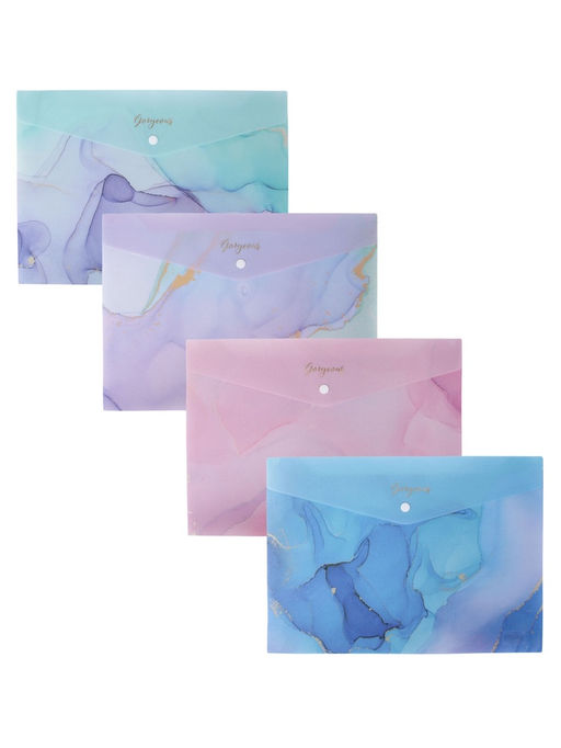 Цена за 12 шт. Папка-конверт на кнопке формат А4 180мкр блестящая МИКС Мрамор (штрихкод на штуке)