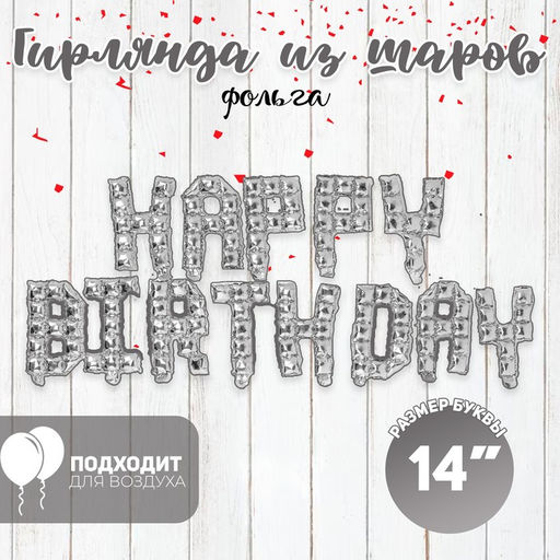 Шар воздушный фольгированный 14" «С днём рождения!», заглавные буквы, серебристый