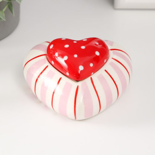• Шкатулка для украшений Красное сердце в горошек, полосатое, керамика, 10.2?10?5 см