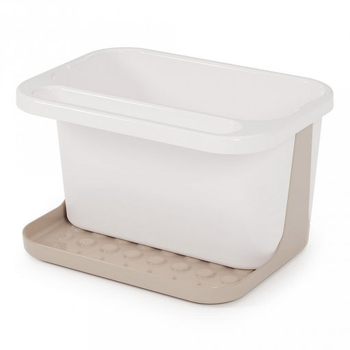 • Подставка для губок, моющего средства, тряпок пластмассовая 21,5х15х13см бело-бежевый (Россия)