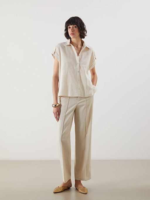Keten Kar???ml? Kad?n Pileli Pantolon