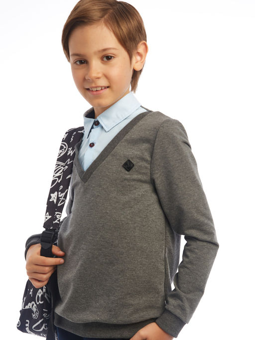 Джемпер-обманка для мальчика из трикотажного полотна и текстиля с длинными втачными