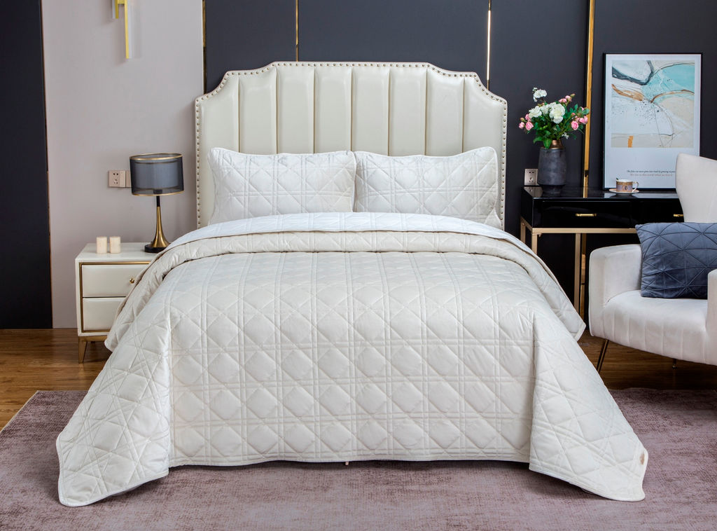 Новинка! Коллекция стеганых велюровых покрывал Dori вдохновленная фирменным мотивом модного дома "CHRISTIAN DIOR". Муаровый велюр с эффектом роскошного перелива , идеально подойдёт для любого интерьера и создаст неповторимую атмосферу элегантности. Коллекция Dori представлена в цветах: пыльная орхидея, молоко, изумруд, трюфель, индиго, платина серебро, кремовый капучино, айвори, серый беж. В комплект с покрывалом 240х260см входят две стильные наволочки, размером 50х70 см, выполненные в том же дизайне.