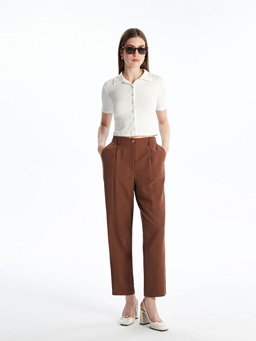 Keten Kar???ml? Kad?n Pileli Pantolon