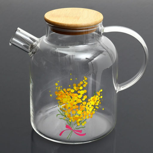 • Чайник стеклянный заварочный с бамбуковой крышкой «Нежная мимоза», 1700 мл