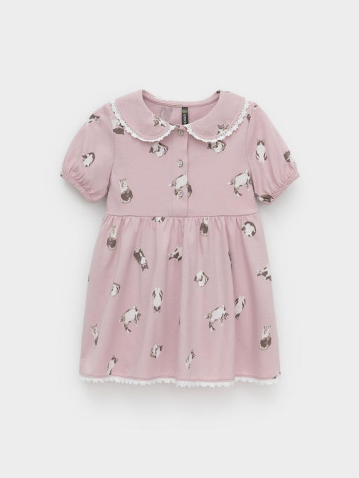 Платье для девочки с короткими рукавами из высококачественного гладкого трикотажа. Для удобства одевания платье застёгивается на пуговицы спереди. Украшено кружевом. Платье сохраняет форму и стойкий цвет после многочисленных стирок и идеально подходит на каждый день. Все трикотажные полотна производятся в соответствии с нормами швейцарского сертификата ЭкоТекс.. Состав: 100% хлопок