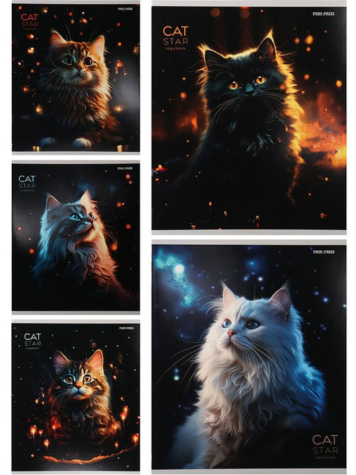 Цена за 2 шт. Тетрадь 48л. Prof-Press "Котики и огоньки" клетка (48-5130) блестки