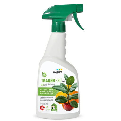Готовый к применению препарат от грибных и бактериальных инфекций на растениях Тиацин Био БАУ. Сделан на основе масла чайного дерева. Уничтожает широкий спектр патогенов на различных культурах. Активирует собственный иммунитет растений, повышает устойчивость к стрессовым факторам. Безопасен для окружающей среды и человека. Удобен в использовании: при обработке растений просто поверните колпачок-распылитель.