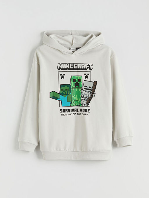 • Kap??onlu Minecraft Bask?l? Erkek ?ocuk Kal?n Sweatshirt