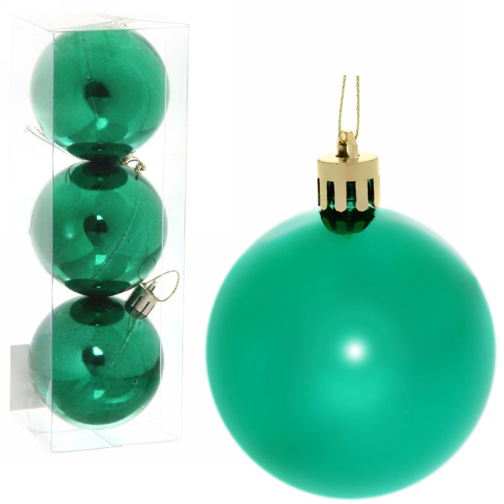 Цена за 4 шт. Новогодние шары 6 см (набор 3 шт) "Глянец", зеленый