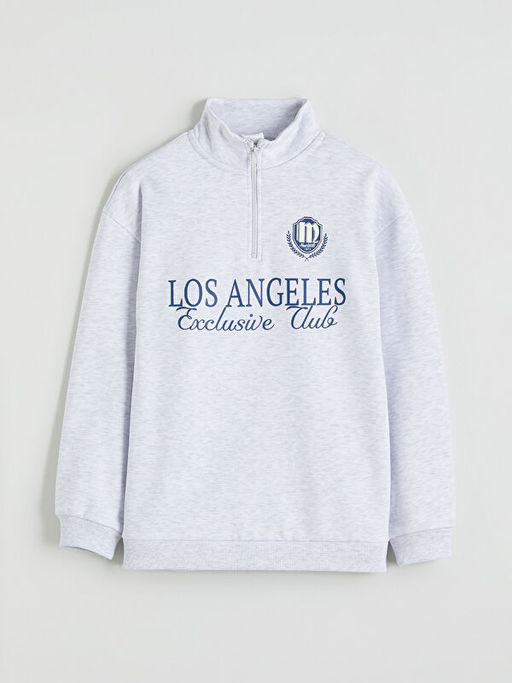 Dik Yaka Los Angeles Bask?l? Erkek ?ocuk Kal?n Sweatshirt