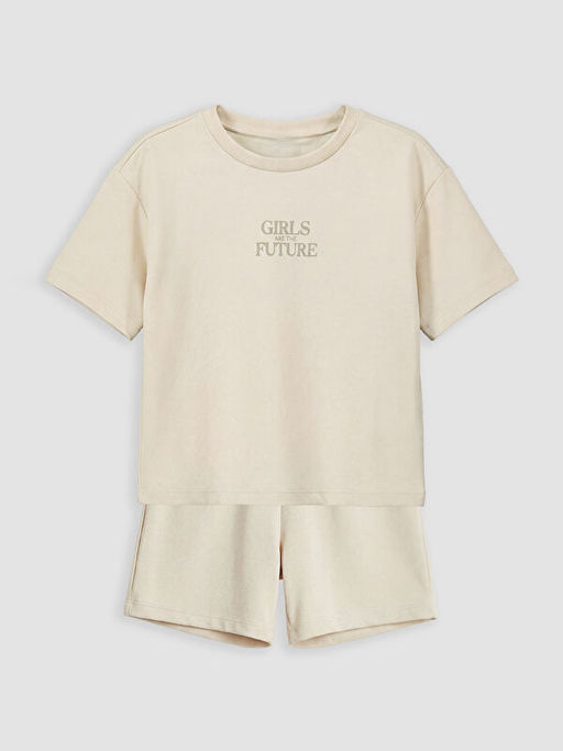 Yaz? Bask?l? K?z ?ocuk Ti??rt ve ?ort Tak?m