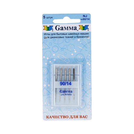 • Иглы для быт. шв. машин Gamma NJ № 90 для джинсы 5 шт в блистере №90