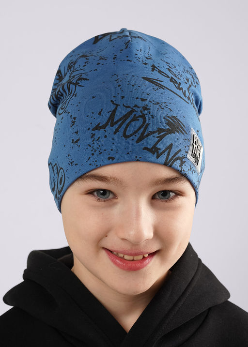 Детская двойная шапка с принтом без отворота, декорирована имиджевой нашивкой логотип. Хорошо защищает от ветра, что делает ее превосходным вариантом для весны. Размер 52-54 95%Хлопок5%ПУ(эластан)