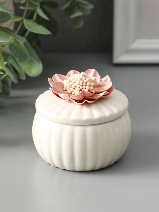 • Шкатулка для украшений «Розовый цветок», с крышкой, белая, керамика, 7×7×6.5 см