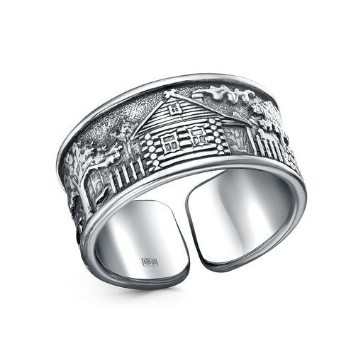 Кольцо из серебра 925 пробы с изображением деревни. Это кольцо не просто украшение, а портал в мир тишины и покоя, в мир, где время течет медленно, а ценности просты и вечны.  Оно напоминает о связи человека с землей, о важности сохранения традиций и о красоте, которую можно найти в самых простых вещах.