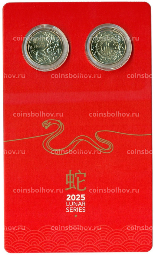 Набор из 2 монет 1 доллар 2025 года Австралия Китайский гороскоп Год змеи (в буклете)