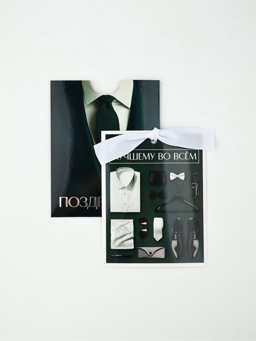 Цена за 3 шт. Открытка с конвертом на ленте «Лучшему во всём», тиснение, 10×12.5 см
