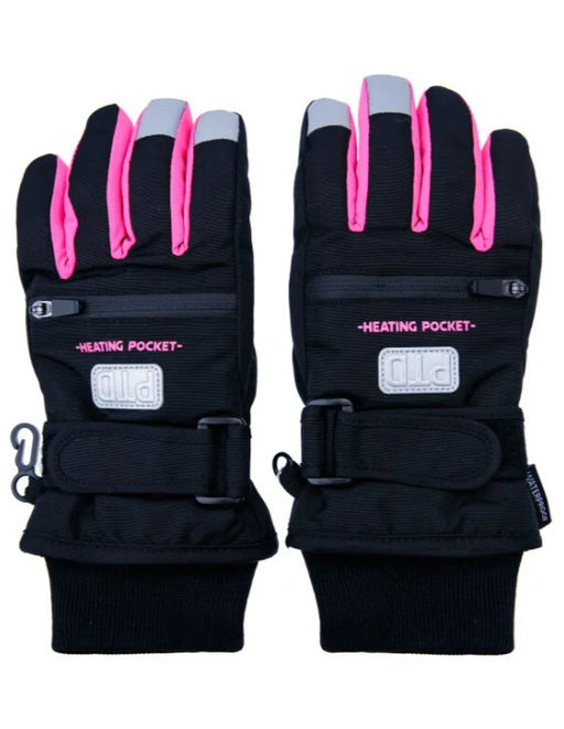 Зимние перчатки с мембраной. Утеплитель синтепон. Мягкая ладошка из влагостойкого полиуретана. Регулируемая застёжка с липучкой по запястью. Застежка для скрепления пары между собой. Эластичный манжет. Светоотражающие элементы. Водонепроницаемый карман на молнии.­