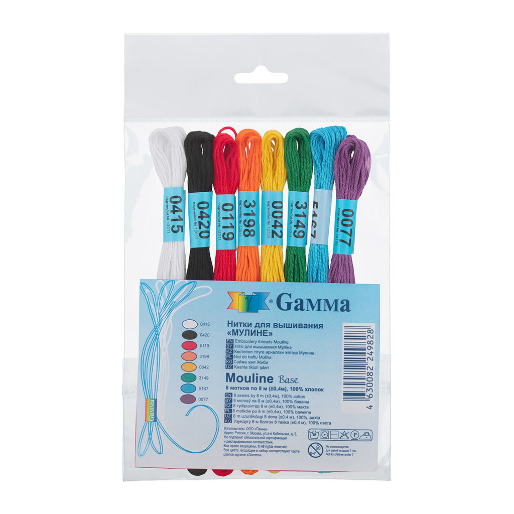 Нитки для вышивания Gamma набор мулине MOULINE 100% хлопок 8 x 8 м