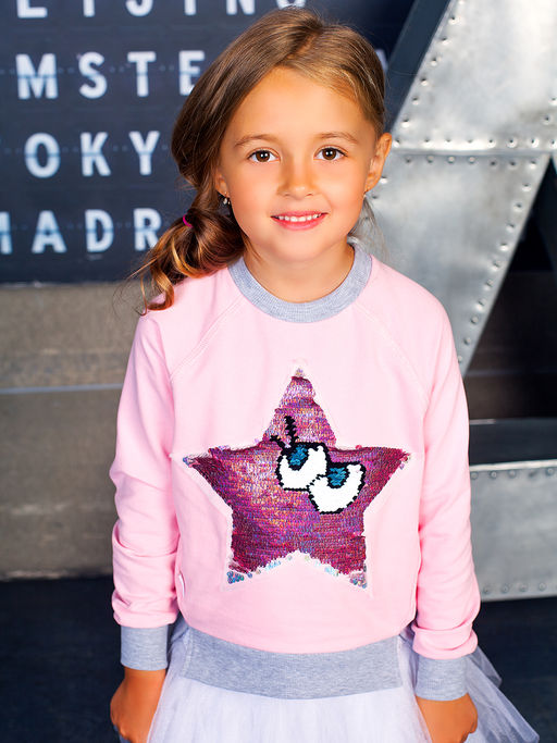 Изделие изготовлено из трикотажного полотна.Украшением служит аппликация с двойными пайетками.Рисунок меняется­