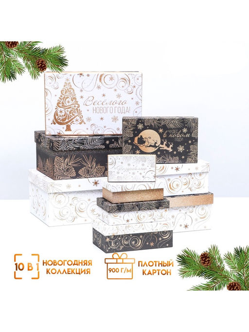 Набор подарочных новогодних коробок 10 в 1 «Счастья в Новом году», 30.5×20×13 - 12×6.5×4 см