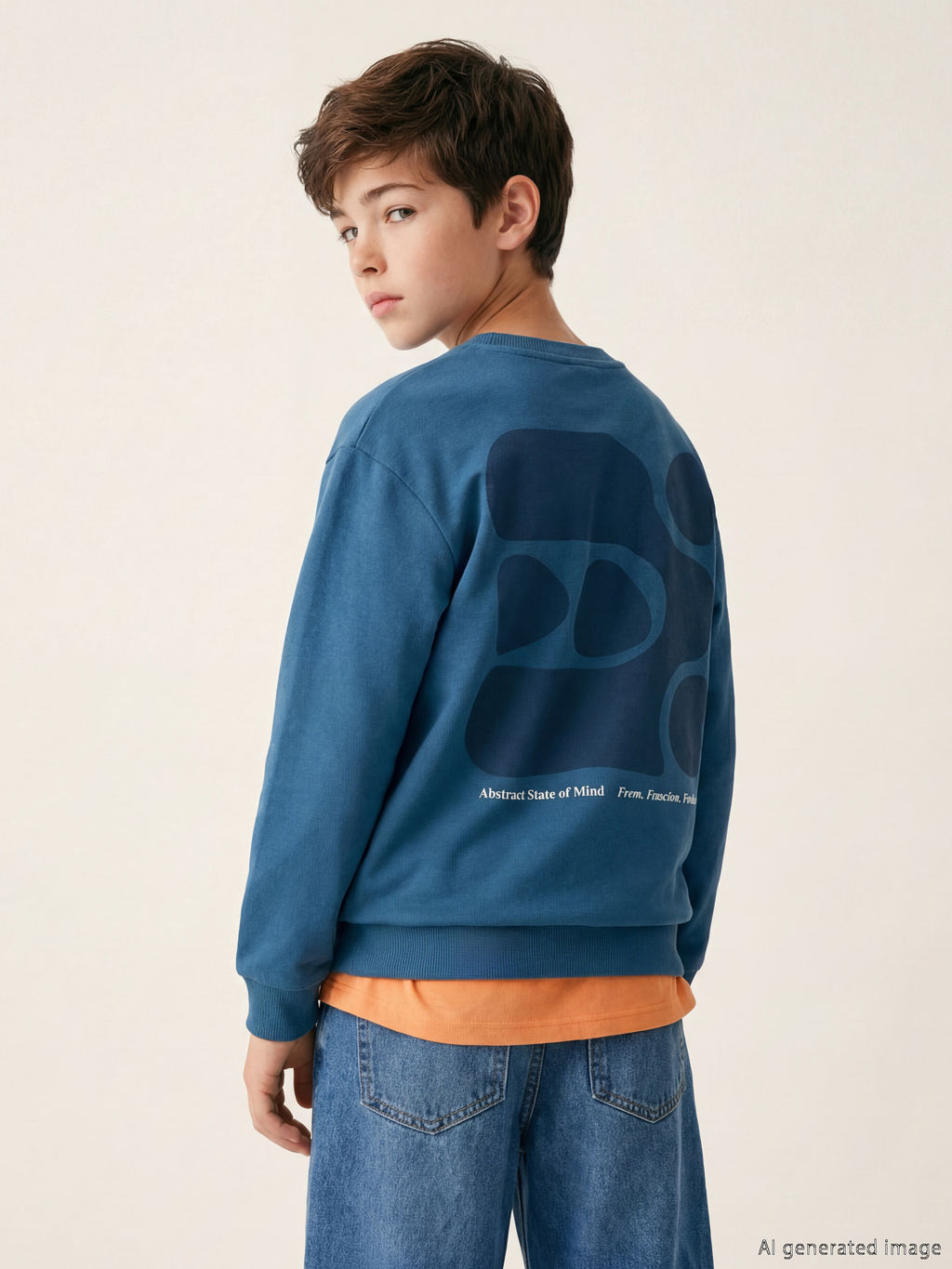 Erkek ?ocuk Bisiklet Yaka Bask?l? Sweatshirt