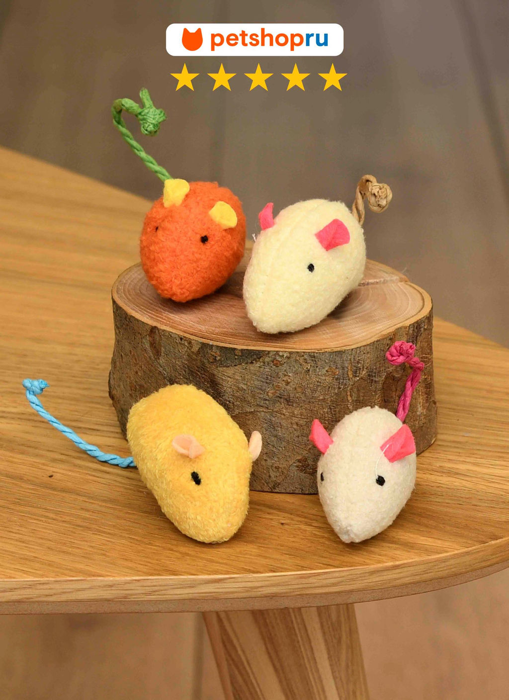 Набор игрушек для кошек, 4 мышки, набор цветов в ассортименте PS117