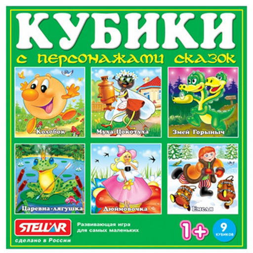 Игрушка "Кубики в картинках №6 "Персонажи сказок" 12х4х12см, 9 кубиков, полистирол, картонная коробка в ту пленке, "Stellar" (Россия)