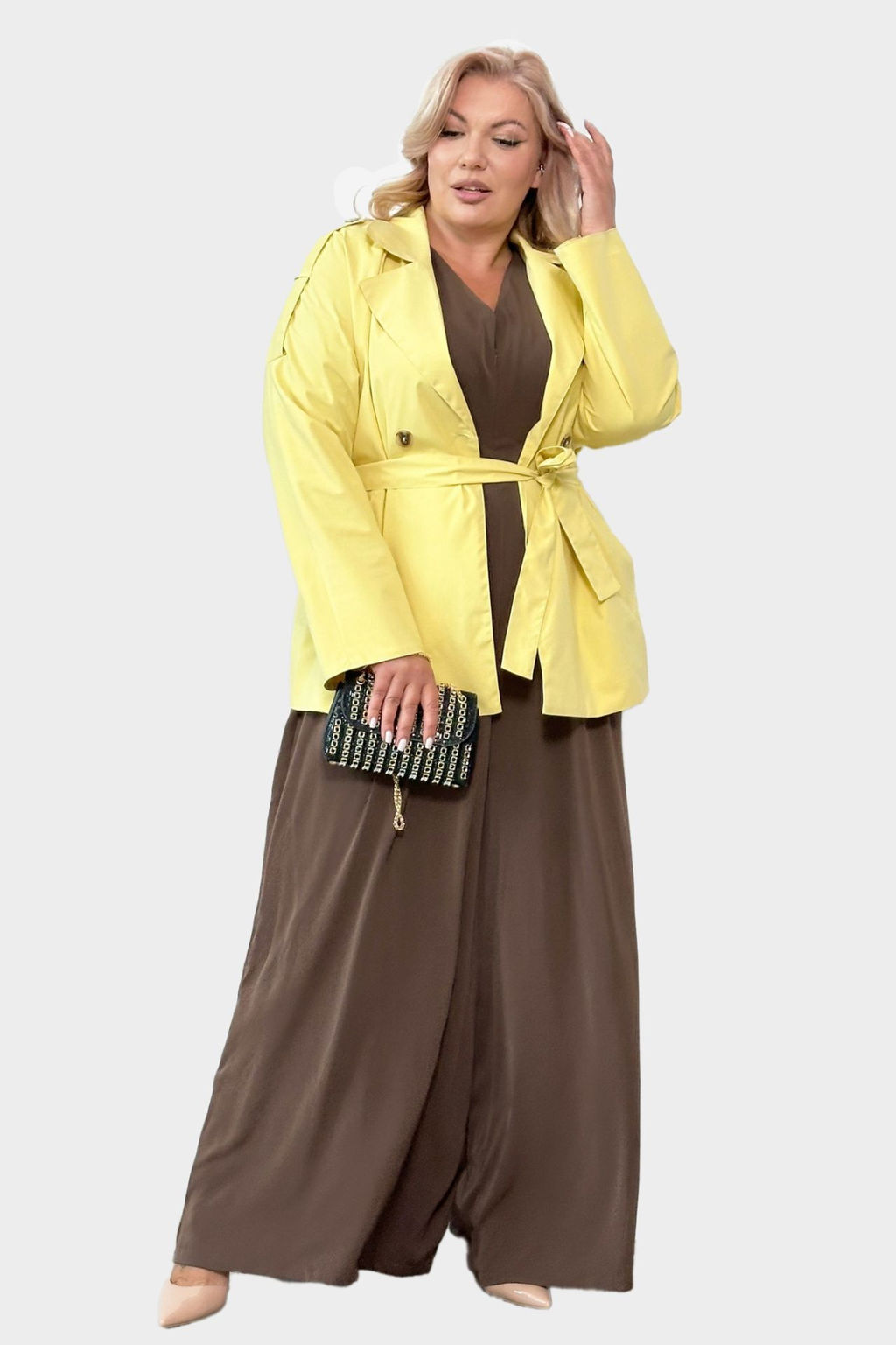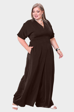 Эффектный комбинезон из мягкого материала имеет цельнокроеные  короткие рукава. V-образный вырез на груди переходит в короткую молнию. Широкая резинка - венгерка по талии способствует оптимальной посадке по фигуре. По бокам  практичные вшивные карманы. Модель привлекает внимание широким клёшем. Гламурный, лёгкий, выгодно подчеркивающий фигуру комбинезон сделает Вас заметной и выделит из толпы.­