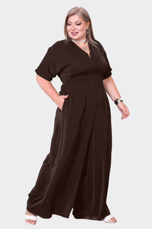 Комбинезон с молнией спереди высокий рост однотонный шоколад