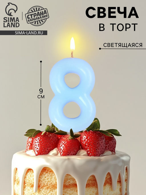 • Цена за 3 шт. Свеча в торт «Цифра 8», светящаяся голубая, 9 см