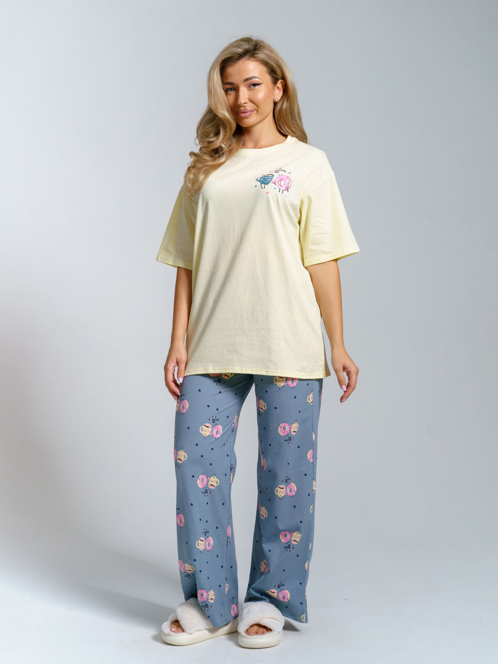 Женская пижама с брюками из 100% хлопка идеальный домашний комплект для комфорта и уюта! Мягкий хлопковый трикотаж нежно облегает тело, обеспечивая свободу движений и приятные тактильные ощущения. Стильный оверсайз крой подчеркивает достоинства фигуры, создавая элегантный силуэт. Универсальный размерный ряд (включая большие размеры) позволяет подобрать идеальную посадку - воспользуйтесь нашей размерной сеткой для точного выбора. Этот домашний костюм станет вашим любимым вариантом для сна, утреннего кофе, чтения книг или занятий йогой. Практичный дизайн с удобной резинкой делает пижаму комфортной для беременных и кормящих мам. Натуральный хлопок гипоаллергенен, отлично пропускает воздух и сохраняет тепло, обеспечивая комфорт в любое время года. Идеальный подарок для близких - мамы, бабушки или подруги оценят заботу и стиль. Организуйте незабываемую пижамную вечеринку или семейную фотосессию в matching-комплектах! Сохраняет форму и цвет после множества стирок. Подарите себе удовольствие от истинного домашнего уюта - закажите свою идеальную пижаму прямо сейчас!