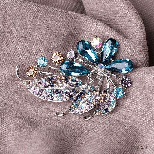 • Брошь Цветок синий камень / 3284 /уп 12/