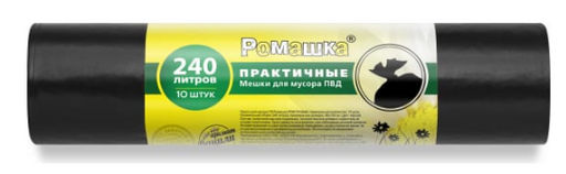 • РОМАШКА мешки д/мусора 240л*10шт в рулоне 45мкм ПРАКТИЧНЫЕ ПВД 90х140 Черные ВР-0071