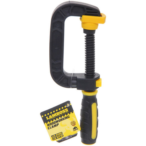 Струбцина Lamboss 2" G-тип пластик состоит из основной рамы и подвижного элемента с зажимом, перемещение которого позволяет менять расстояние между губками инструмента. На подвижной части также располагается зажимное устройство винт, используемый для фиксации подвижной части, а также регулирования силы сжатия.