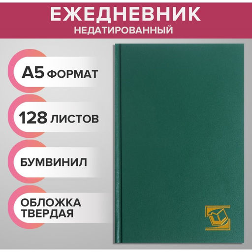 • Ежедневник недатированный А5, 128 листов, обложка бумвинил, зелёный