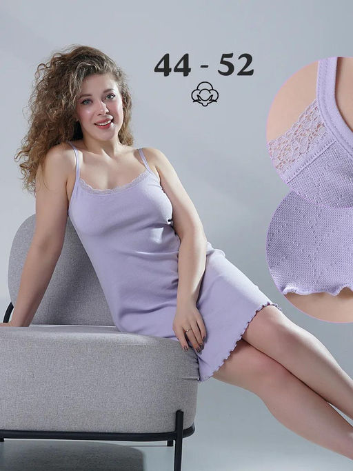 Ночная сорочка на тонких бретелях для сна не стесняет движений и доставляет максимальный комфорт и удобство. Бретельки из эластичной мягкой резинки с регулировкой длины, уютный хлопковый трикотаж высокого качества, отделка мягким кружевом по линии декольте. Пастельный оттенок и утонченный перфорированный рисунок на ткани создают нежный образ. Свободная модель средней длины миди подходит девушкам и женщинам любого возраста. Будем рады, если Вы оставите отзыв и поделитесь своим впечатлением о покупке!