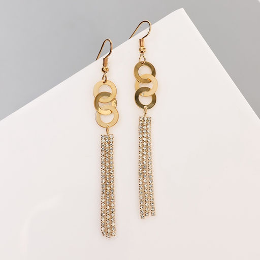 Серьги висячие со стразами «Вечерние», нить и кольцо, белые в золоте,10 см