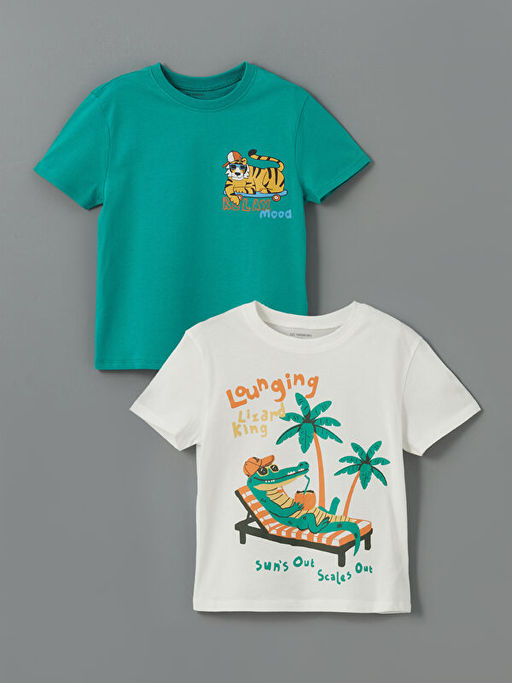 • Bisiklet Yaka Bask?l? Erkek ?ocuk Ti??rt 2li