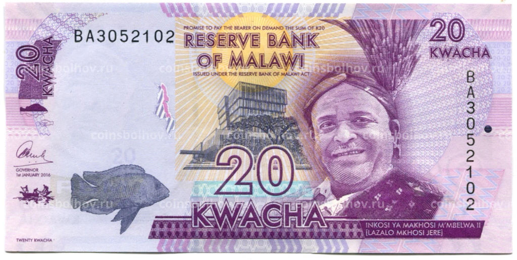 • Банкнота 20 квача 2016 года Малави