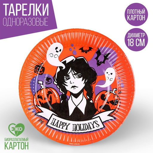 • Цена за 10 шт. Тарелка одноразовая бумажная «Хэллоуин», девочка, 18 см