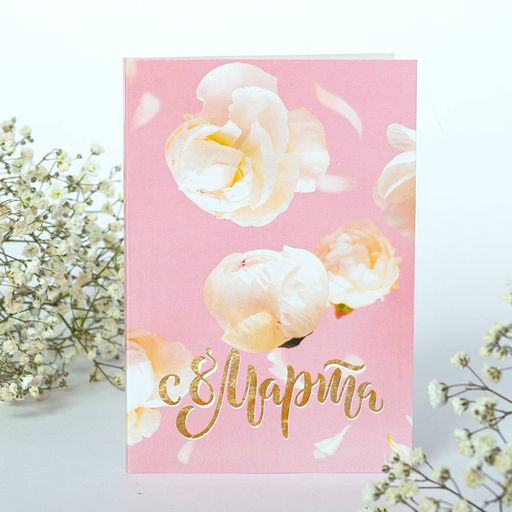 • *Открытка 4 шоколадки "С 8 марта!" (нежные светлые цветы)